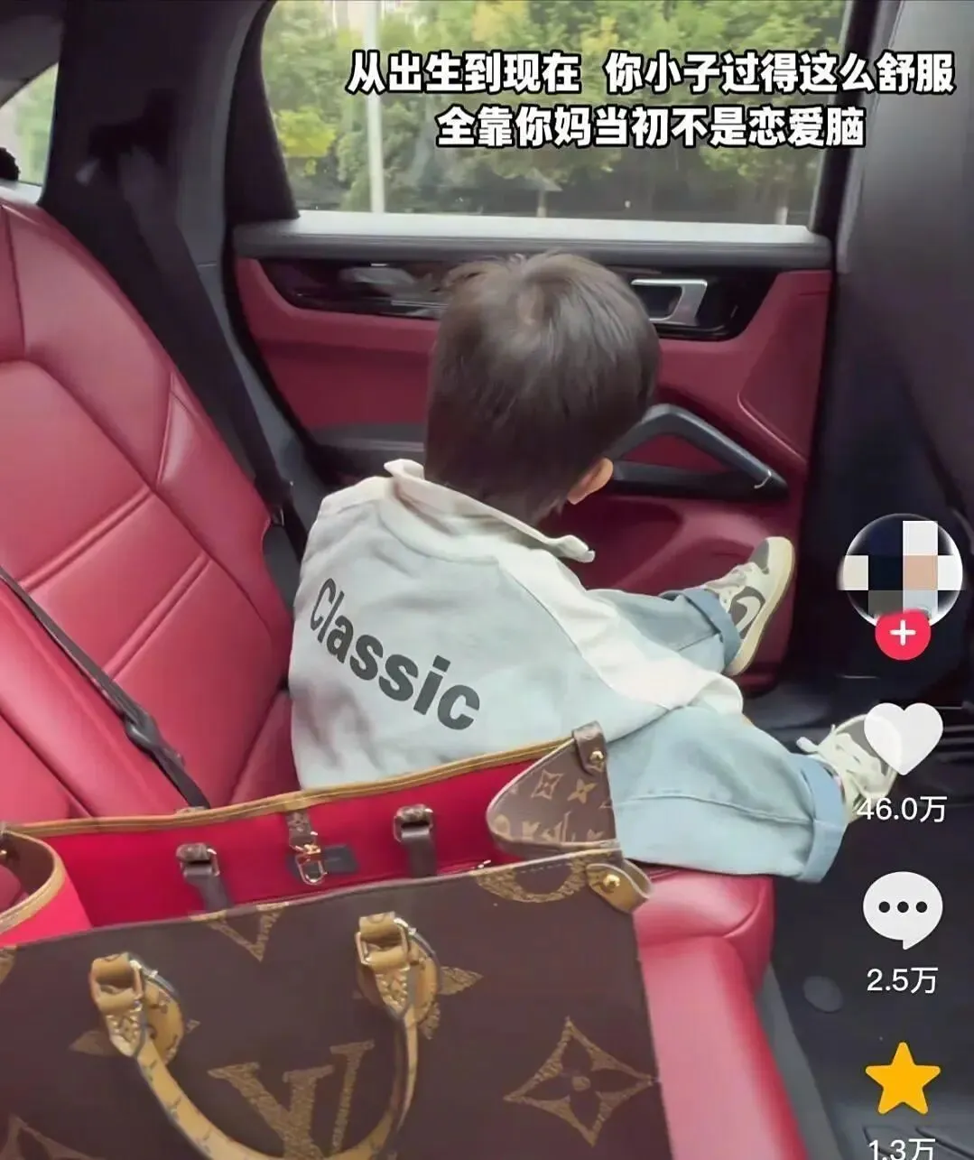 就拿最近网上风靡的晒娃热潮来说吧,大量的90后年轻宝妈晒出了自家女儿、儿子坐在豪车上的视频,配文也是现实又扎心:你现在这么舒服,全靠你妈当年不是恋爱脑。