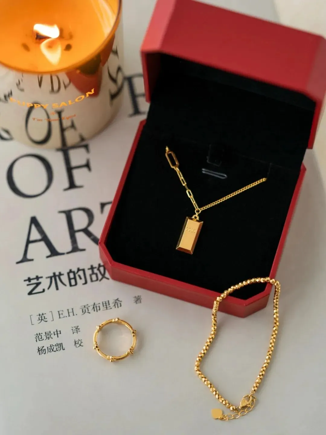 下午躲在办公室台灯下整理半天收据 指尖有个倒刺搁在合同夹上 刺溜一下有点疼 才想起来自己上一次买金首饰已经是两年前了 那会儿金价跟现在还不一样 浮动特别明显 今年身边同事最常聊的几句话就是“你觉得还会涨吗” “现在冲不冲” 我一般都装傻 反正我的原则挺死板 分批买 不贪大件 有工费的我基本只挑简单款 溢价一高就先晾着哈