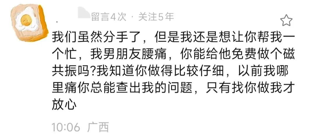 我们虽然分手了,我男朋友腰疼,能帮他免费做个磁共振吗?