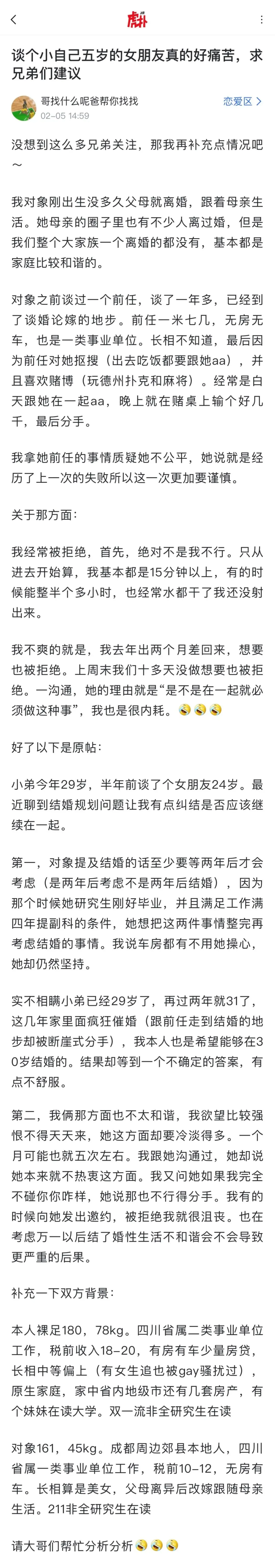 >谈个小自己五岁的女朋友真的好痛苦,求兄弟们建议