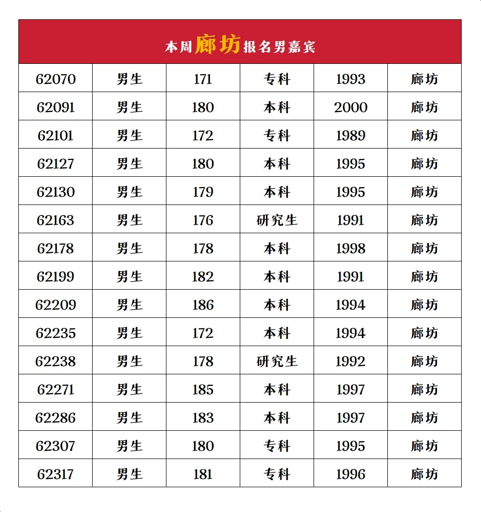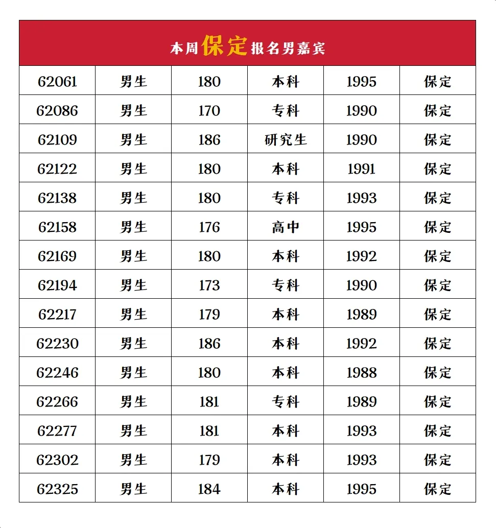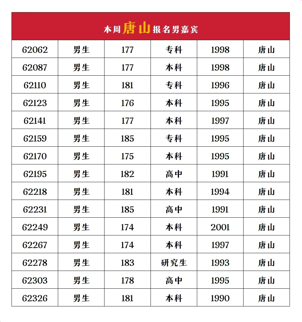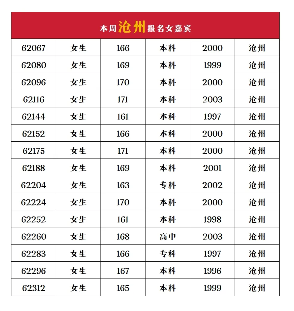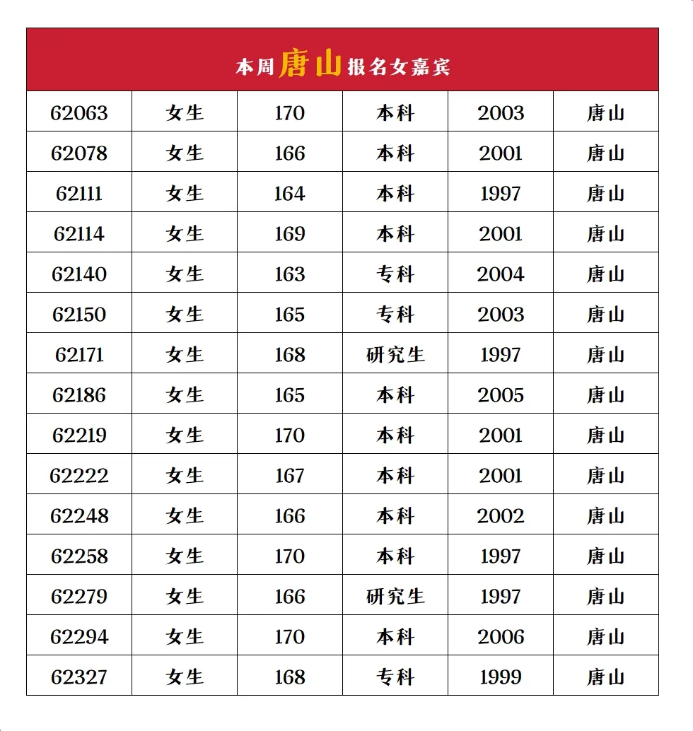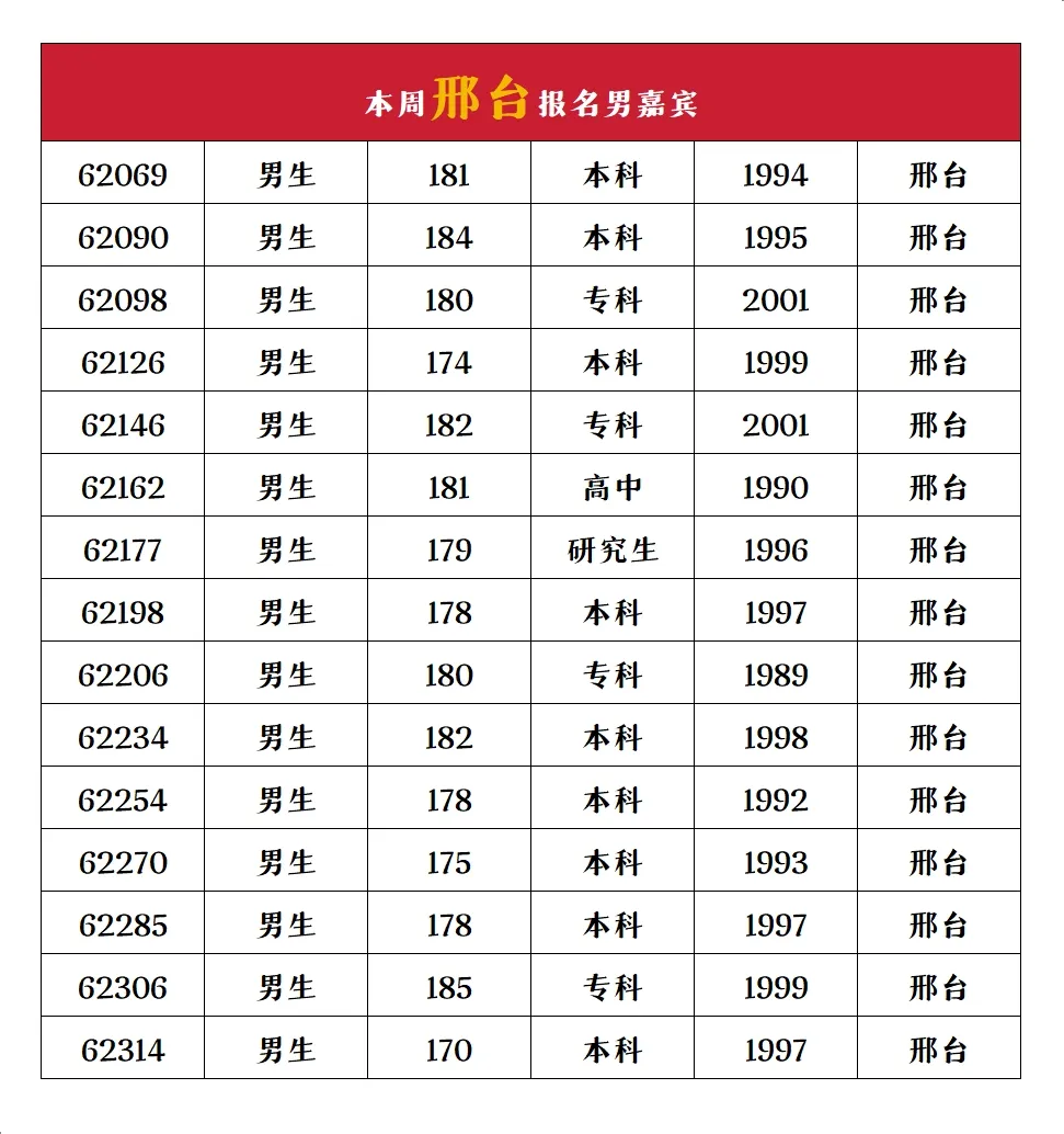 本期恋爱匹配已报名嘉宾,篇幅有限,每个城市仅展示部分嘉宾,目前河北开放城市:石家庄、保定、唐山、邯郸、沧州、邢台、廊坊、衡水、张家口。