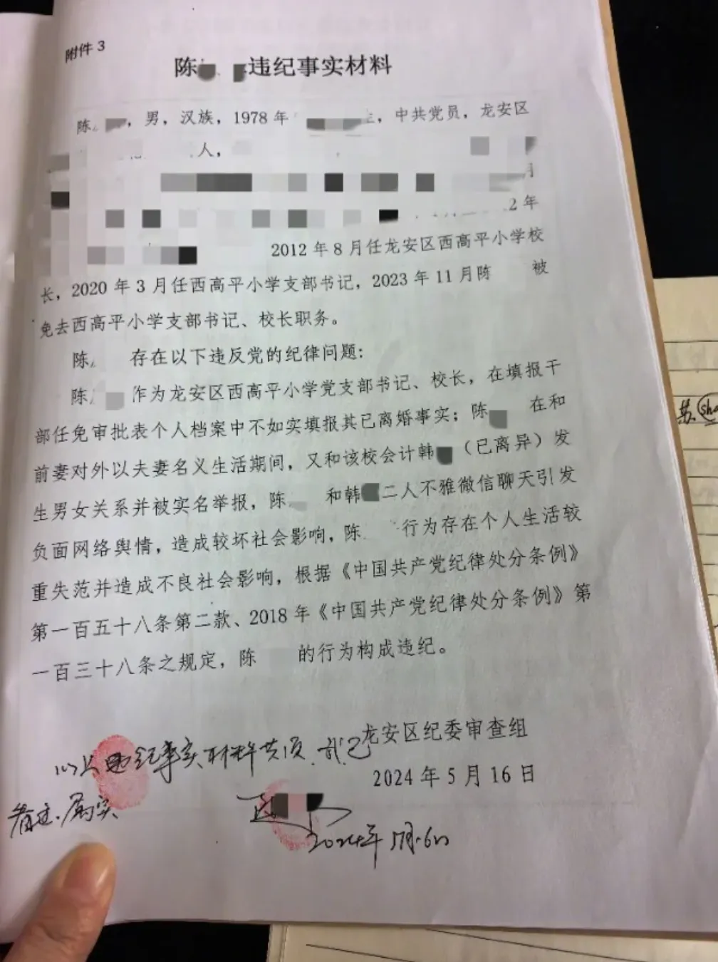 陈先生认为,两人均离异,属于正常恋爱,不应被追责。但教育局认定其“违背社会公序良俗”。
