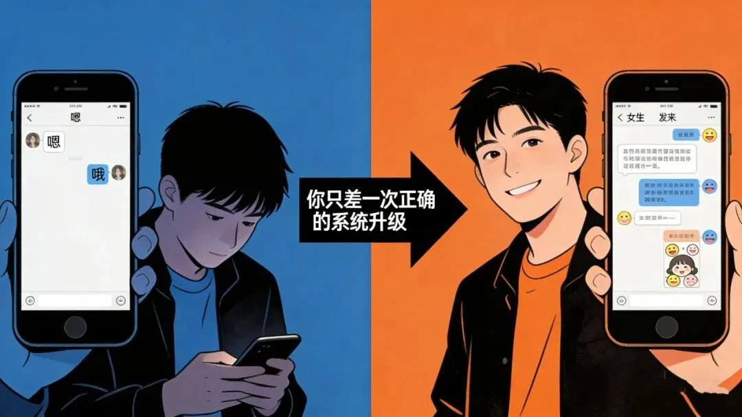 你用的是父辈传下来的、充满bug的“旧版本”——认为“只要对她好,就能感动她”。而时代早已更新,女生内在的“评判程序”基于的是一套你从未了解的吸引力与情绪心理学。