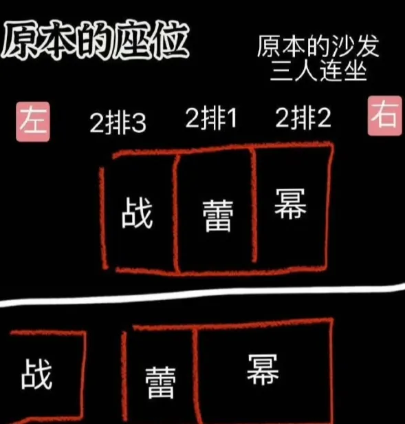 但是活动前肖战的名牌被撕,临时调整了座位,变成了辛芷蕾和杨幂双C,肖战虽然仍然在辛芷蕾左边,但是却在另一张凳子上,也就是偏离了视觉正中心。不过最后调成了一开始的座位,也就是辛芷蕾主C,三人在一张凳上。