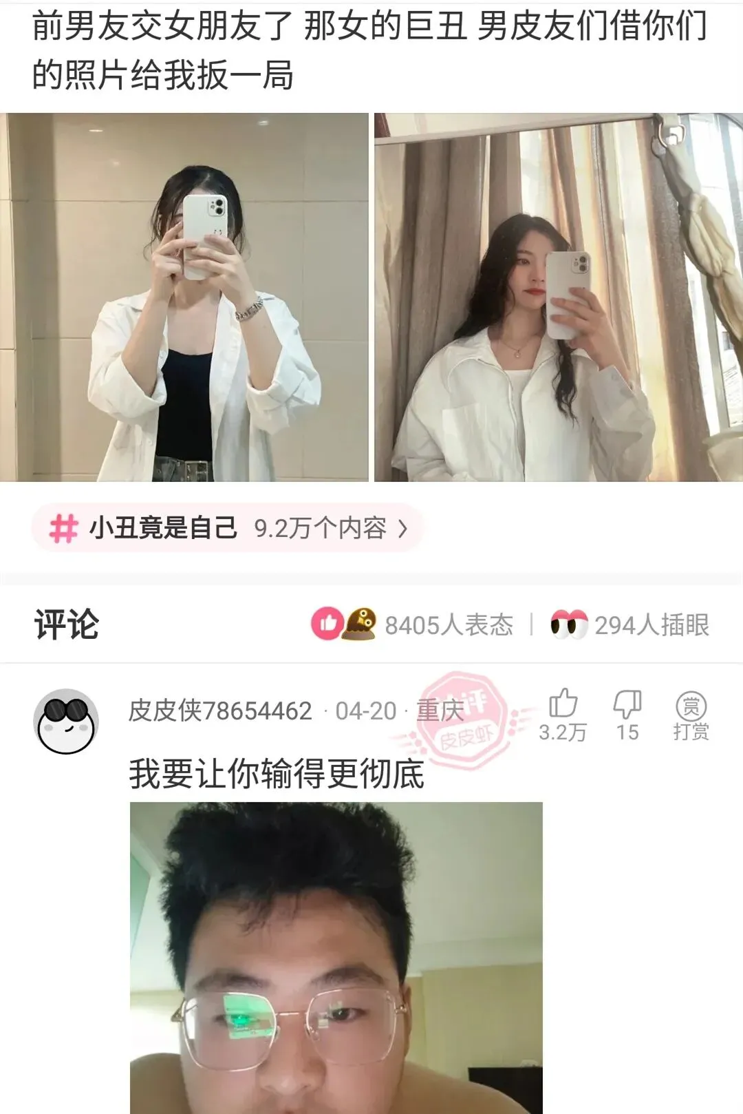 前男友交女朋友了,那女的巨丑,男皮友们借你们的照片给我扳一局