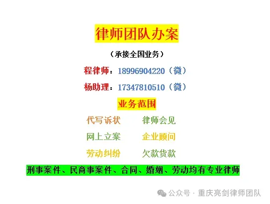 本微信公众号平台是程亮律师及重庆亮剑律师团队分享学习心得,讲解、传递法律知识的平台,著作观点仅供大家参考。作者写作时也会引用或参考相关部门、他人或平台的文章,如有侵权,请联系作者修改或者删除。