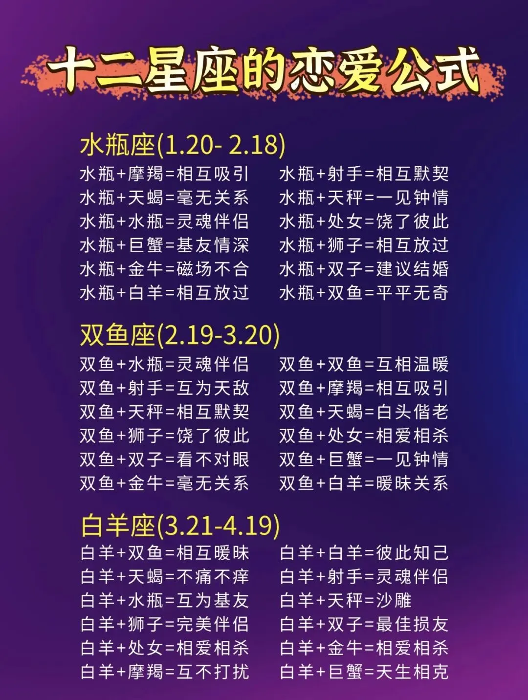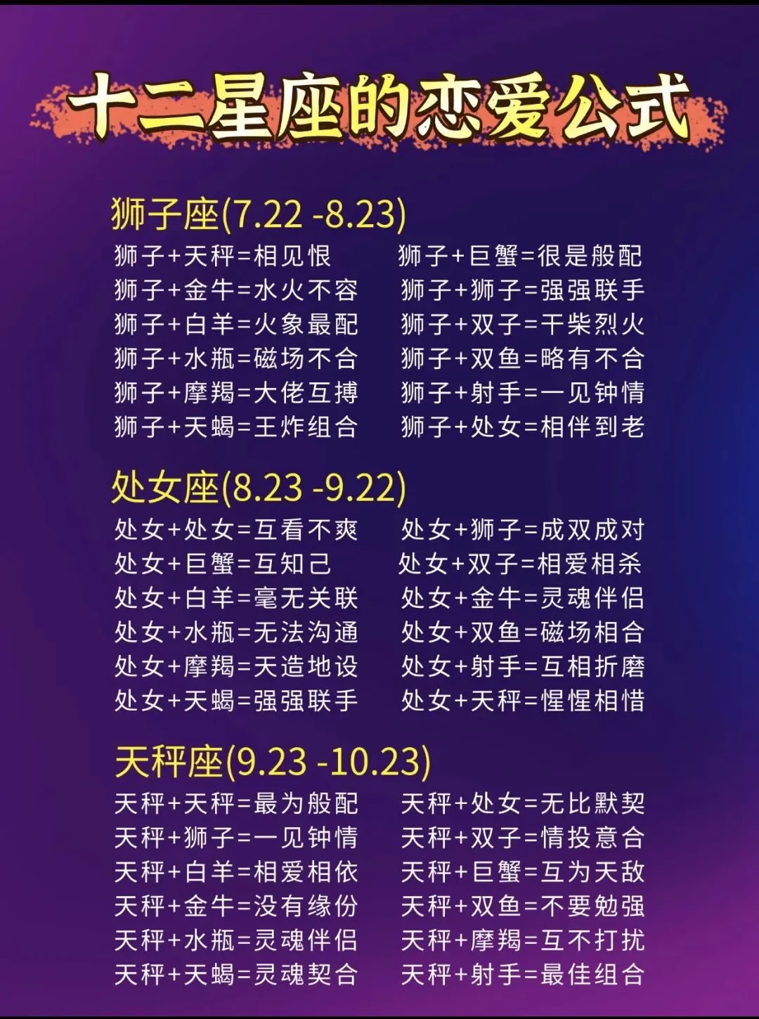 >十二星座“恋爱公示”搭配组合