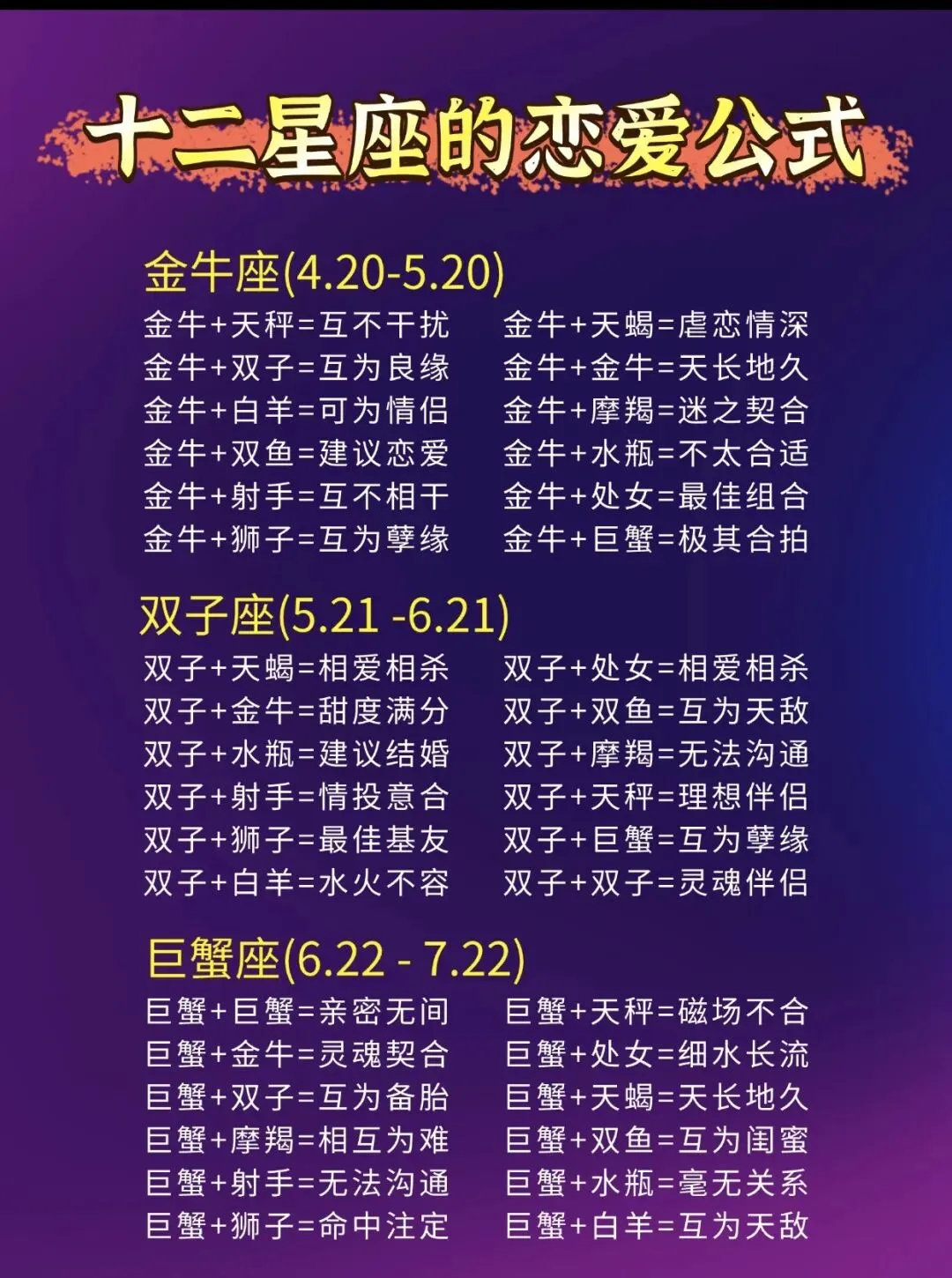 十二星座“恋爱公示”搭配组合