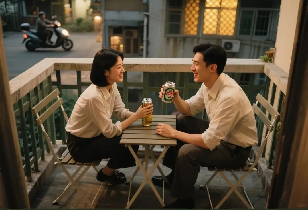 阳台只有两平米。折叠椅一撑就占满。我们并排坐着喝珠江啤酒,远处城中村的窗格子像发光的蜂巢。“主管今天找我,”我说,“下月转正考核。”李慕白捏易拉罐的手指紧了紧,铝壳发出细碎的哀鸣。他笑得很用力:“太好了!等你转正,我们就……”