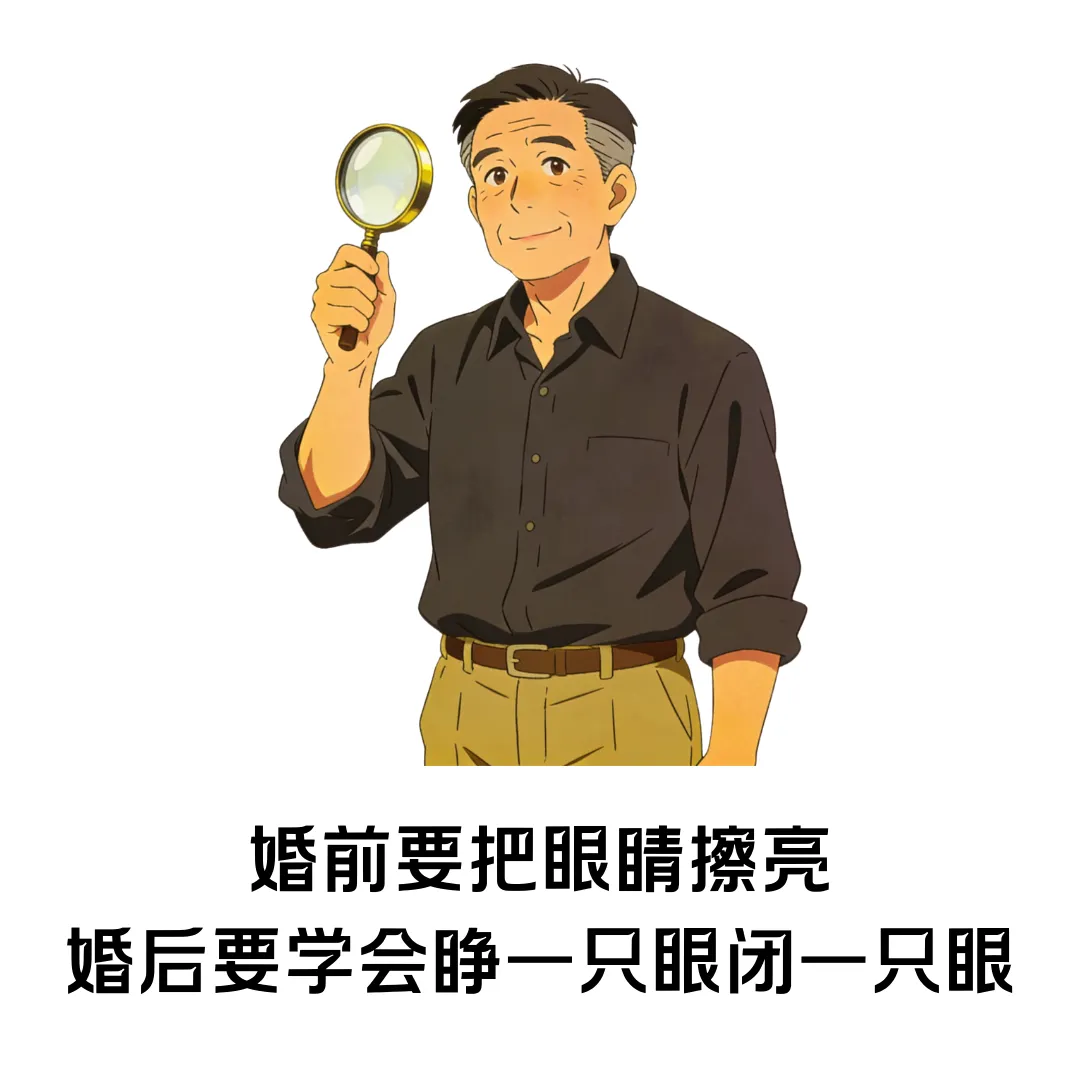 “结婚前要把眼睛擦亮,结婚后要学会睁一只眼闭一只眼。”