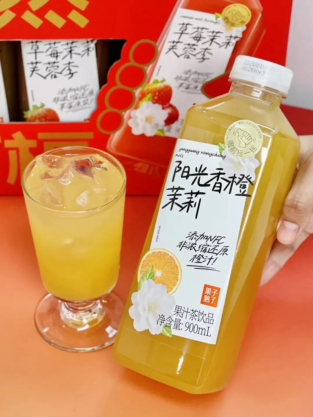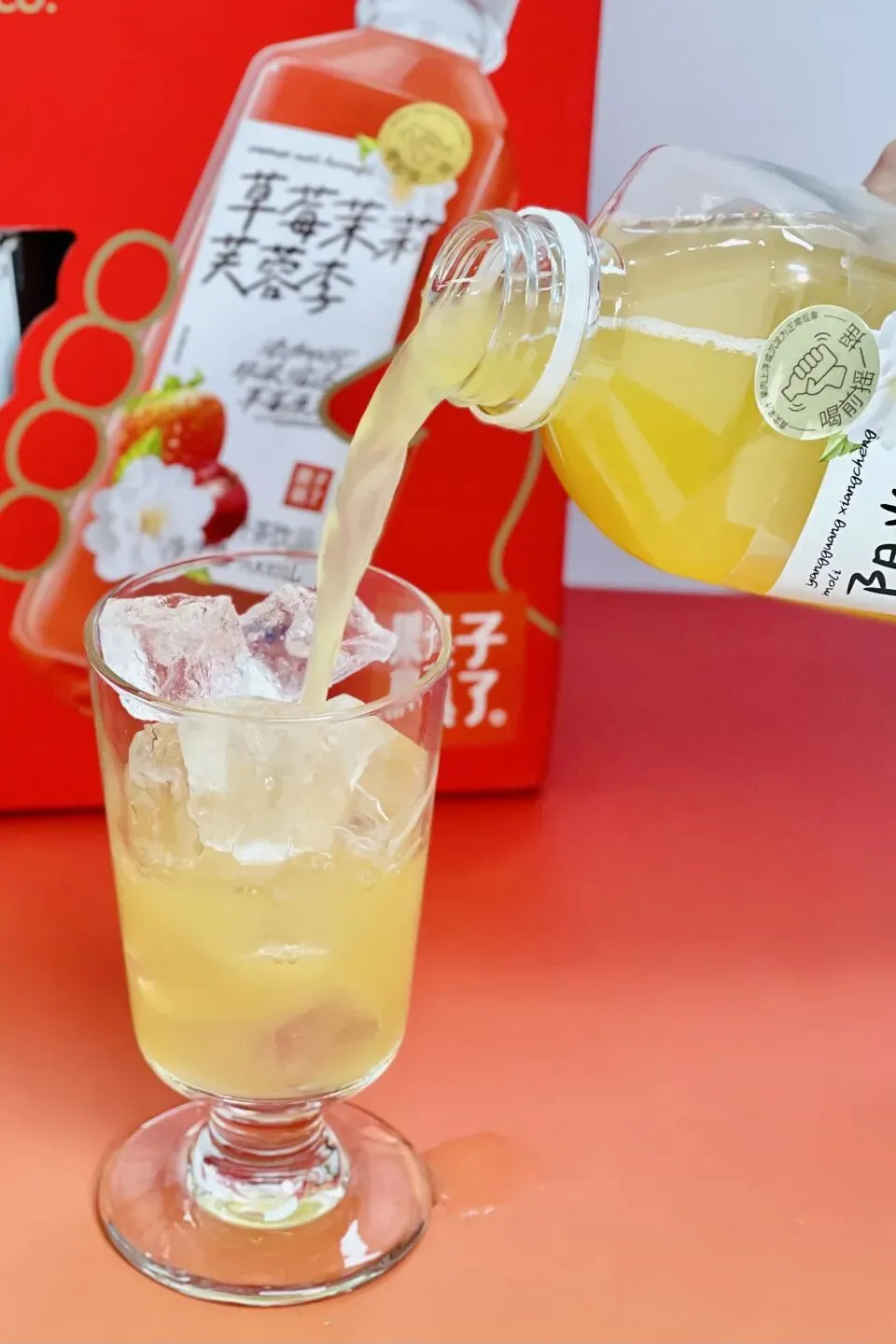 用果子的甜化掉茶的涩,用茶的清中和果的腻,摇匀后每一口都裹着淡淡的果粒感!春节家宴吨吨喝也没负担~