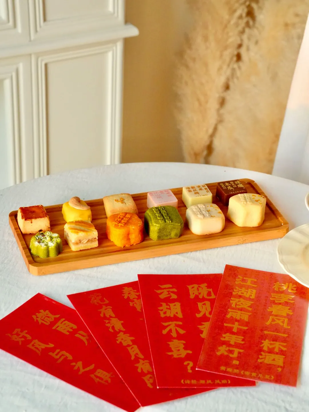 想尝鲜的姐妹,可以选【新岁展庆】,礼盒里有12颗茶菓子,寓意着十二味风华~