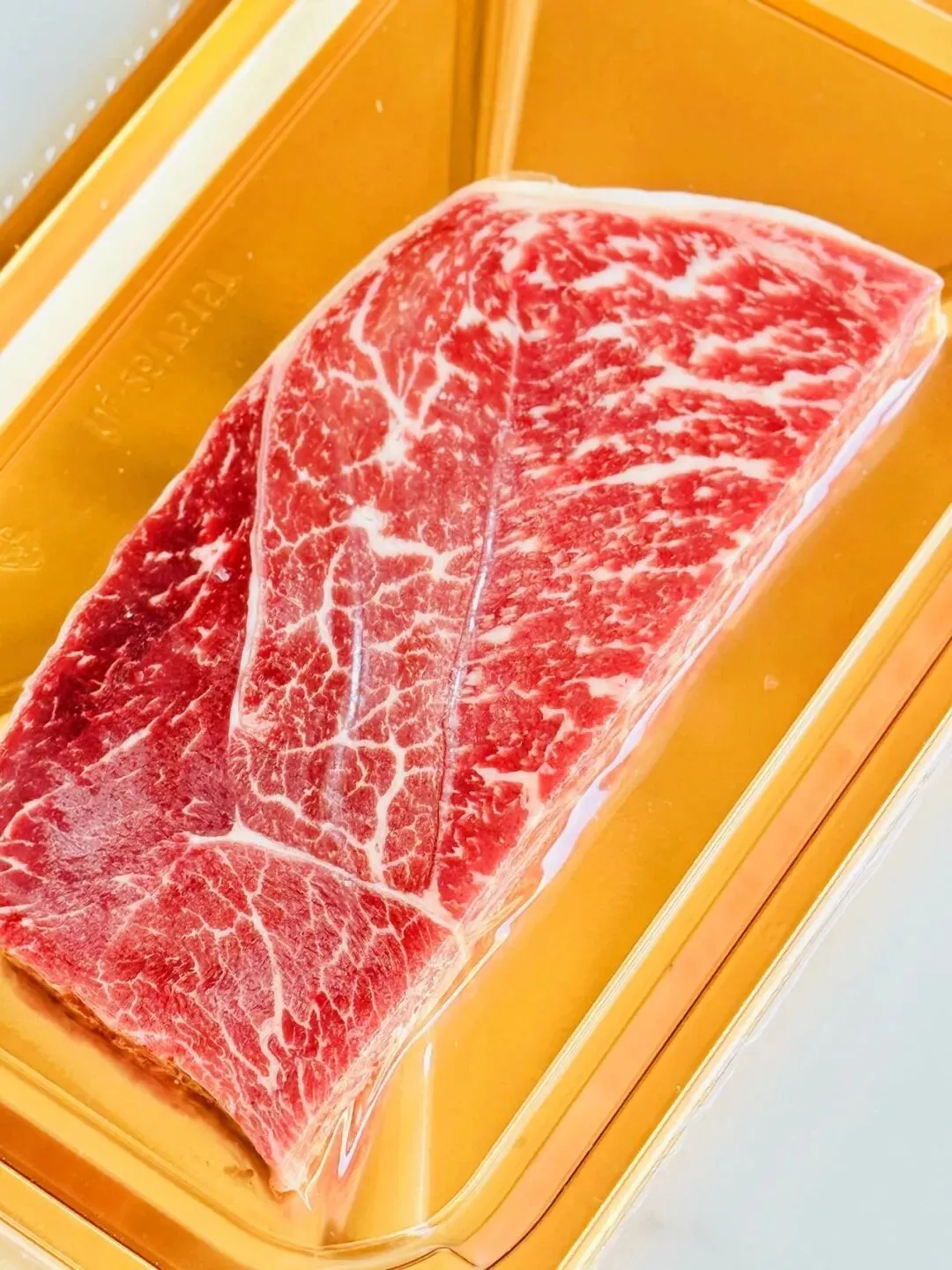 取材自全牛仅约 2%的膝圆精华,雪花纹理均匀分布,每寸肉浸润奶油油脂,嚼起来奶香脂香融为一体,简直好吃到颅内高潮!