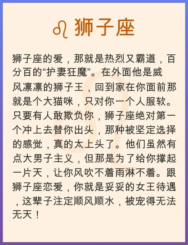 真的,有些星座那是老天爷赏饭吃的情种,跟他们在一起,你才知道啥叫被捧在手心里。