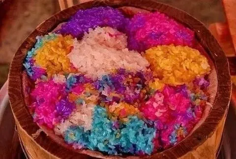 布依族尤其喜欢糯食,各种节日都包粽粑,打糯糍粑,做褡裢杷,蒸五色糯米饭等,也常用这些糯米食品敬供祖宗、山神,款待客人和赠送亲友。