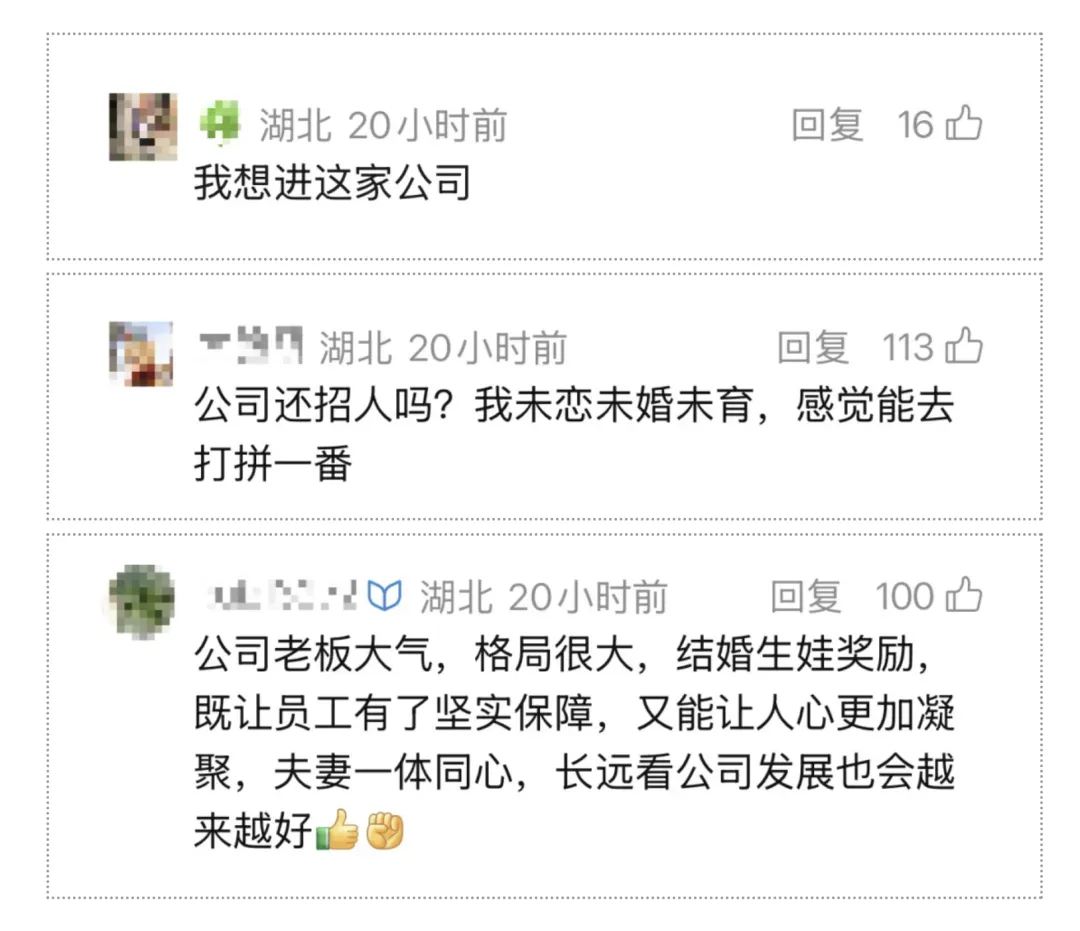 为52位去年结婚或生育的员工