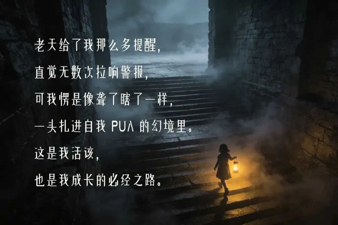 可我愣是像聋了瞎了一样,一头扎进自我 PUA 的幻境里。