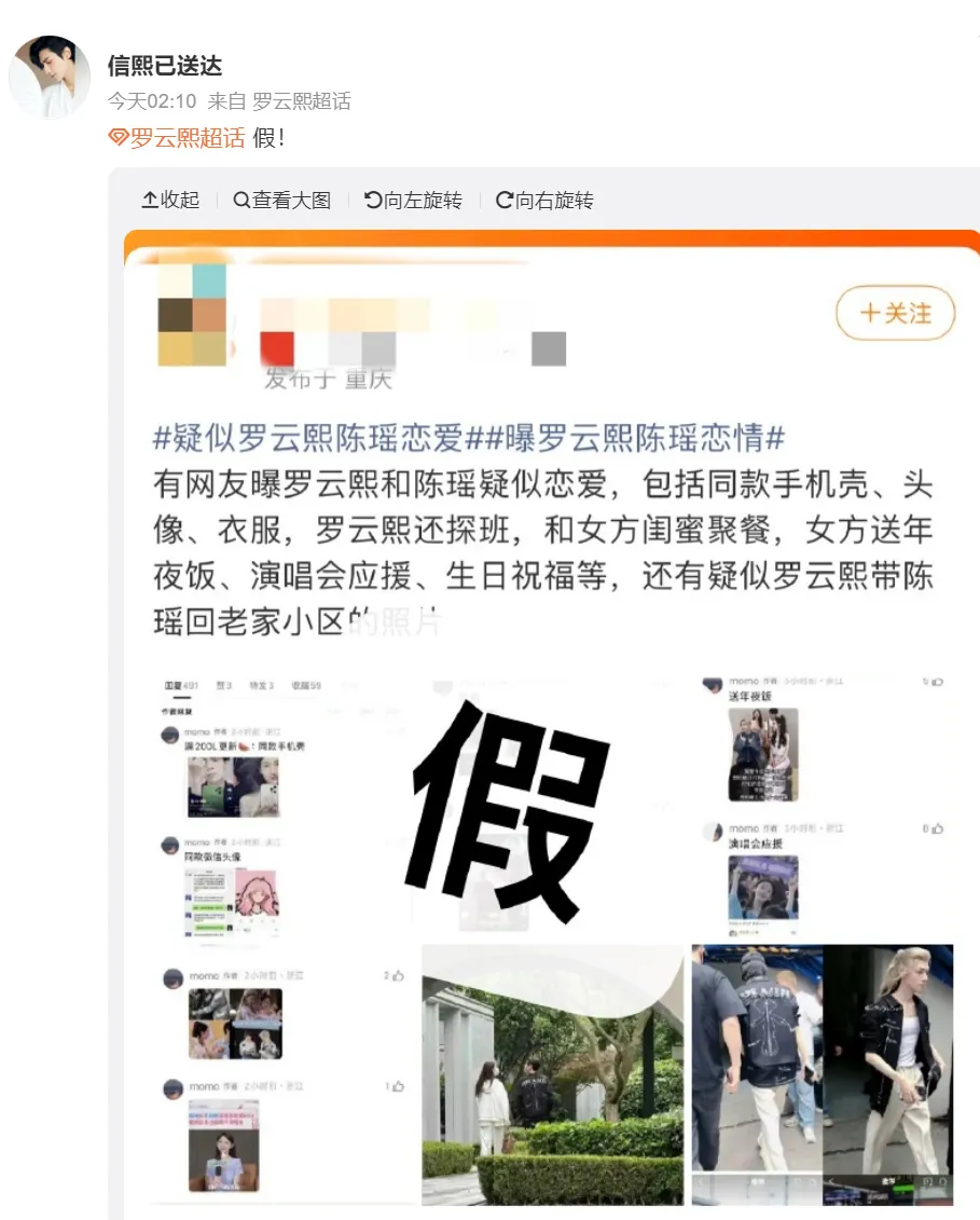 很快,罗云熙方辟谣。陈瑶粉丝也发声回应,称手机壳不是同一时间段,衣服是商务合作,头像是假的。俩人关系好,探班互动也很正常。所谓的恋爱细节完全是臆想出来的。