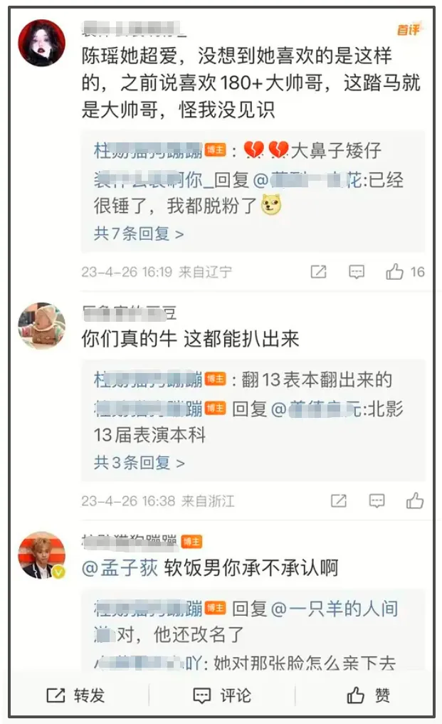 路人表示陈瑶和罗云熙的恋爱“证据”确实站不住脚,俩人应该只是很好的朋友。但陈瑶和孟子荻不管是不是真的在一起,都应该被嘲笑。陈瑶年纪也不小,完全可以恋爱自由,而男方如果真心相待,大家应该送上祝福。粉丝护主心切可以理解,但艺人恋爱终究是私事,强行拉踩、互揭老底,只会让双方都陷入尴尬,反倒让一场无实锤的绯闻,变成了多方皆输的闹剧。