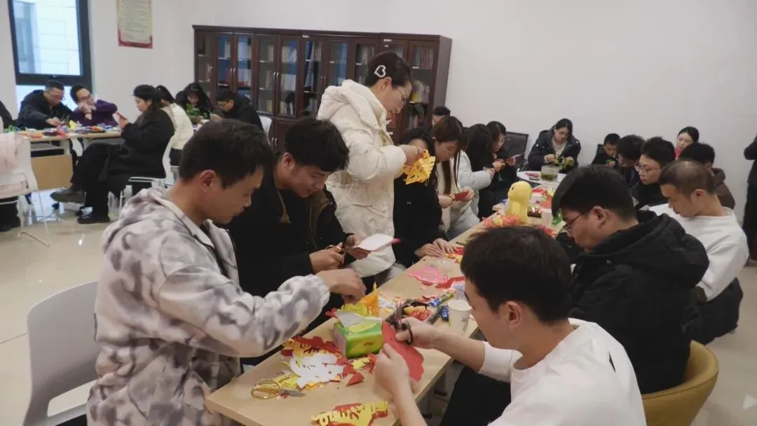活动以成语为媒,大家随机结为游戏搭档,在“你来比划我来猜”等互动中加深默契,用欢声笑语拉近彼此距离。活动还特邀曹氏剪纸传承人曹云飞老师现场讲授剪纸技艺,演示高超技法。在老师指导下,大家携手合作完成一幅幅寓意美好的剪纸作品,在指尖流转间传递温情。