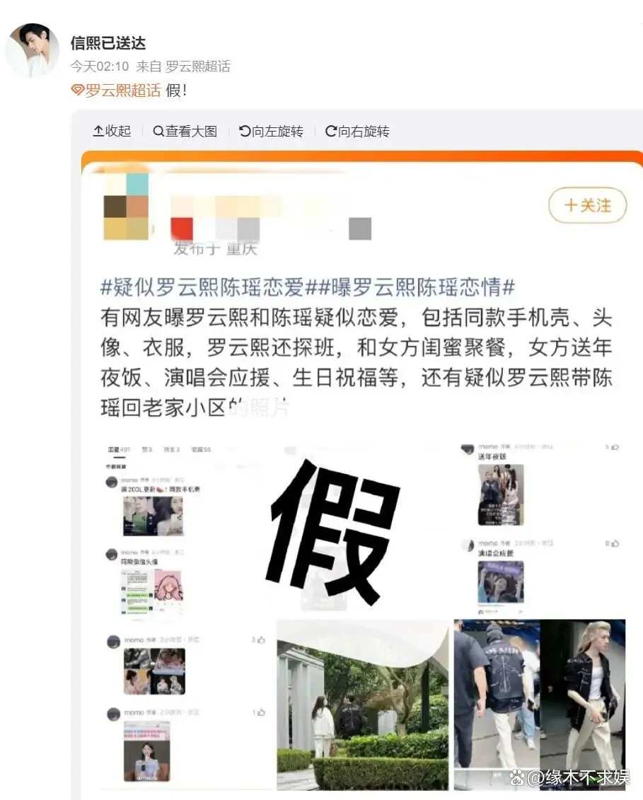 2月8日消息,娱乐圈的瓜总是来得猝不及防。 2月7日深夜,罗云熙陈瑶恋情话题突然空降热搜榜,阅读量瞬间突破六千万。 网友晒出同款手机壳、探班互动、甚至同返老家的“证据”,让这场突如其来的恋情传闻迅速发酵。 然而还不到12小时,2月8日凌晨,罗云熙工作室关联账号“信熙已送达”就在微博超话用一个大写的“假! ”字强势辟谣,直接指称这是“有预谋的造谣”。