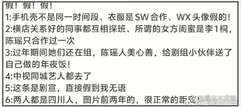 很快,罗云熙方辟谣。陈瑶粉丝也发声回应,称手机壳不是同一时间段,衣服是商务合作,头像是假的。俩人关系好,探班互动也很正常。所谓的恋爱细节完全是臆想出来的。