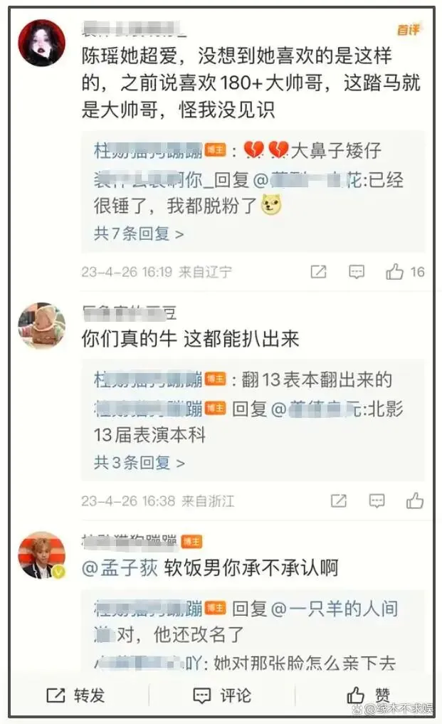 其实当初陈瑶和孟子荻的恋情确实传得沸沸扬扬,女方很多粉丝都脱粉了。在粉丝看来,陈瑶有颜值有能力,本人也说过喜欢一米八的大帅哥。而孟子荻虽然是北影13届表演本科毕业,但事业远不及陈瑶,长相也很一般。