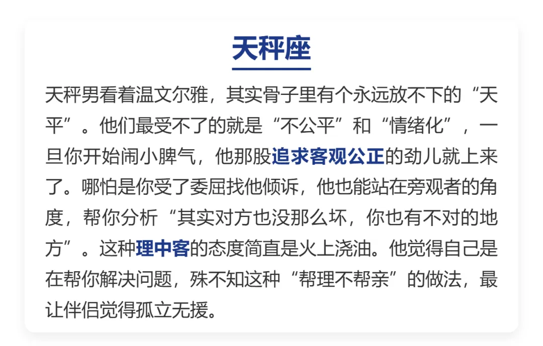 谈恋.爱这.件事,最怕的不.是吵架,而是.你正委.屈得.想哭,对方却.搬个.小板凳开.始给.你画思.维导图。很多.时候,女生要的.只是一.个拥.抱,或者一.句“我站.在你这边”,可有.些男.人偏.偏不懂,非要.掰开了揉.碎了.讲逻辑。其实啊,这真不.是他们.不爱你,而是他.们骨.子里太.理性,总觉得“把事儿捋.顺了,气自然.就消了”。今天咱.们就来.盘盘,哪三个.星座男.最容易.把谈情说.爱变成“奇葩说”现场。