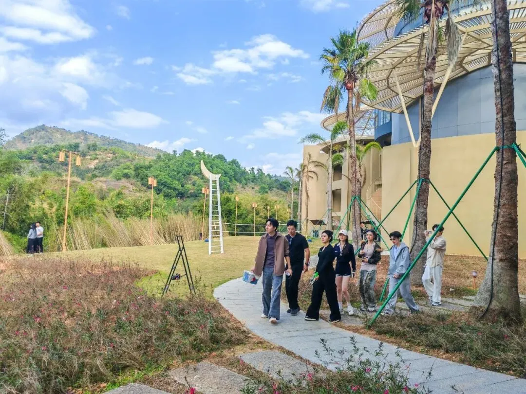 当日虎跳峡旅游度假区青山如黛、江水潺潺,依托黄华江两岸生态资源打造的滨水峡谷风光,构成天然的摄影取景地。拍摄现场,40余名剧组工作人员各司其职,收音与场务团队配合默契,21名摄影师分散于草坪各处,以多机位、全角度捕捉每一动人画面——嘉宾演员身着休闲服饰,在柔软草坪上开展“爱的贴贴”“草地排球”等互动环节,时而默契协作完成挑战,时而因趣味失误引发阵阵欢笑。阳光透过林间洒落,为这场青春邂逅铺上一层温暖光影。该节目导演介绍,当前所有嘉宾均已集结完毕,当天拍摄的草地运动会属于群体互动环节,旨在通过游戏增进彼此感情;环节设计包含一些贴近性互动,促进肢体接触与心灵交流,使整体氛围更加活泼。有现场的剧组工作人员表示:“这是我见过最治愈的拍摄地,峡谷的清风和满眼绿意都让人灵感迸发。感觉信宜就像一个小桂林,颇有‘山水甲天下’的韵味。这里每到夜晚都有一道亮丽的风景线,早晚景色反差大,每个时段都有独特的美,让人流连忘返。”据悉,《恋爱吧!李花季》自2月2日正式开机以来,已先后在信宜多个地标取景。虎跳峡的峡谷风情是节目重点呈现的场景之一,剧组亦先后前往李花林、梯田等特色景观进行拍摄,多角度展现信宜全域旅游的魅力。
