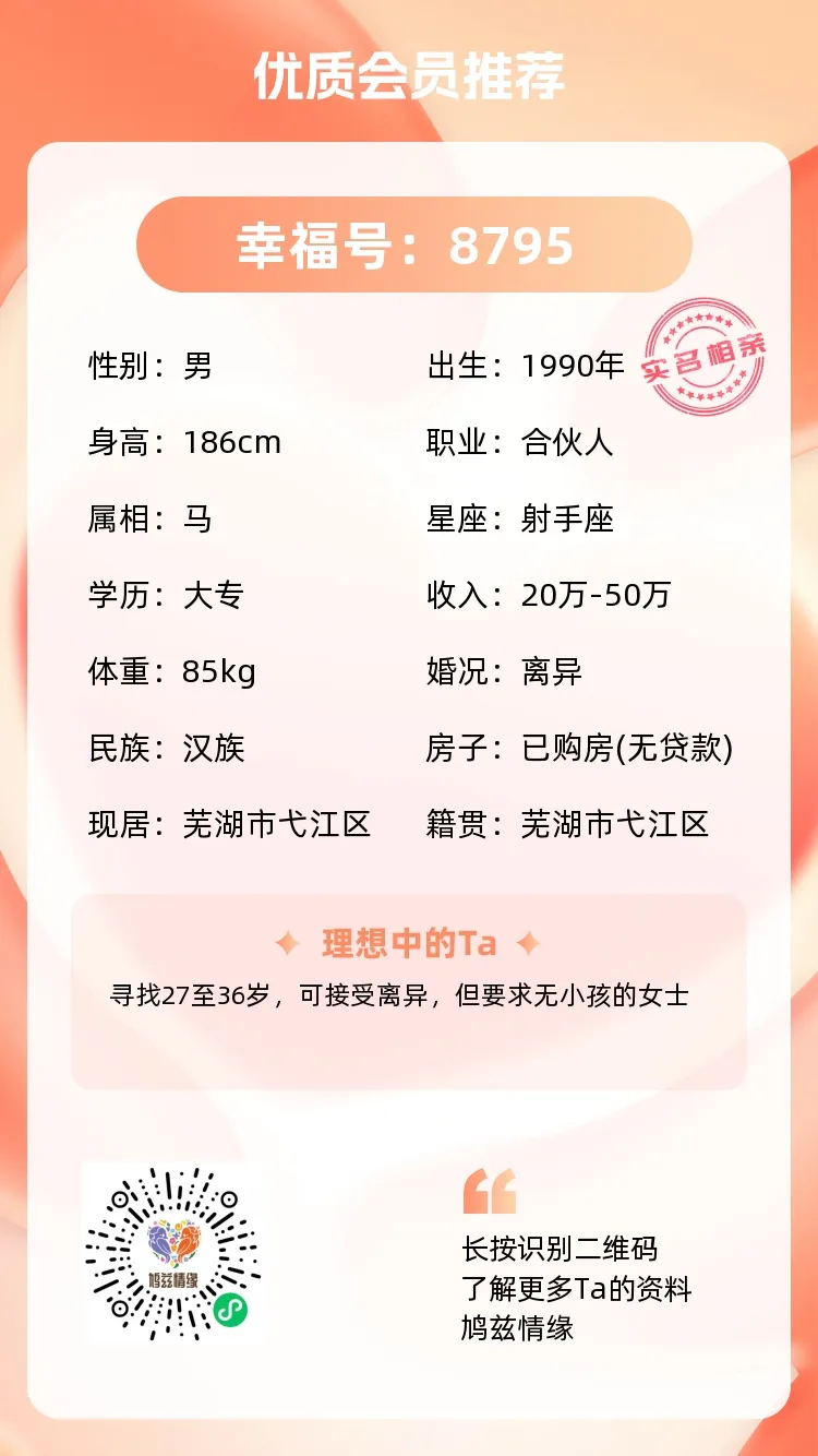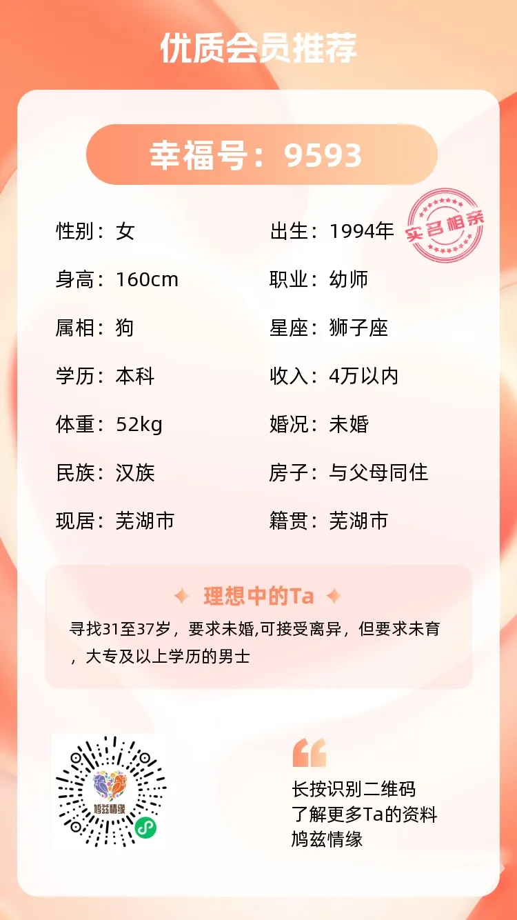 目前注册登记实名单身男女50000+实名芜湖单身男女,杜绝虚假信息,让你见的每一个人都是“货真价实”: