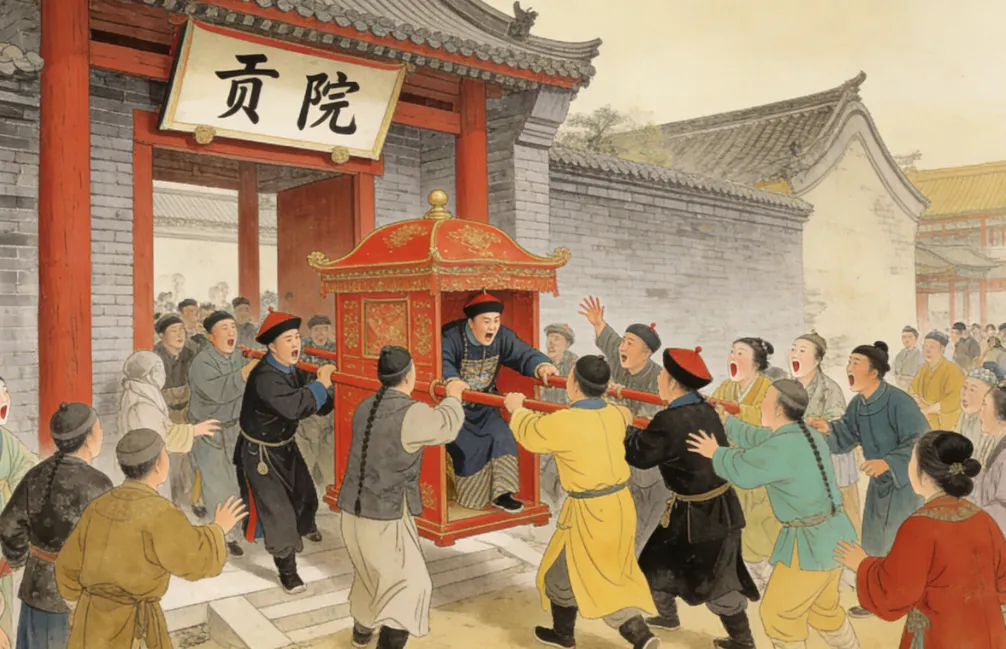 每年春闱放榜之日,北京城的贡院外总会出现一道奇特风景:一群衣着华丽的豪仆眼巴巴地盯着刚贴出的榜单,一旦看到自家老爷嘱咐的名字,便如猎鹰扑兔般冲上前去,不由分说地将那位新科进士“请”上轿子,直奔府邸——这就是清代有名的“榜下捉婿”。