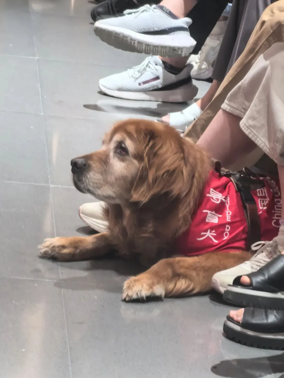 导盲犬安静聆听的瞬间、