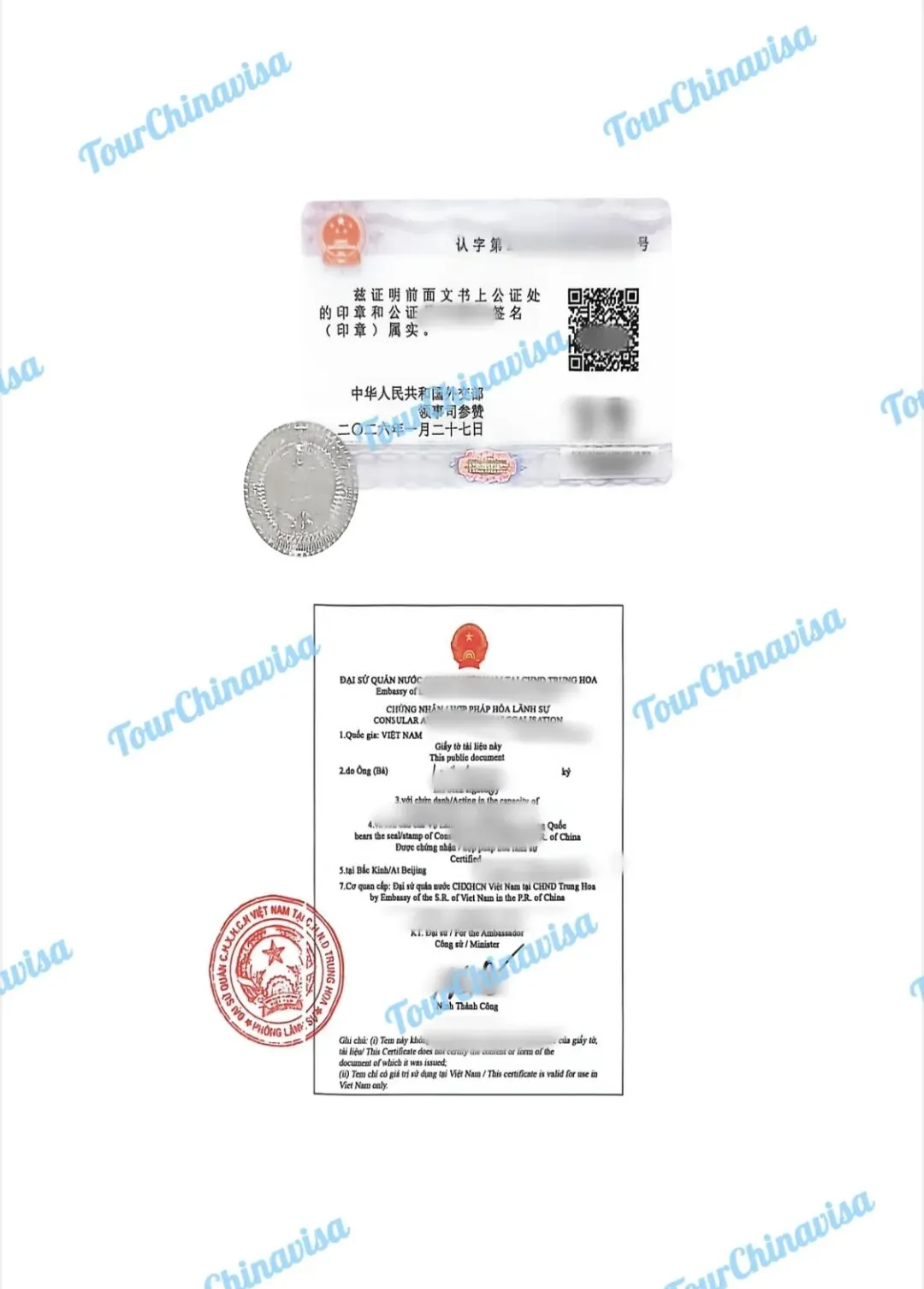 最后,将已完成中国外交部认证的公证书,提交至越南驻华大使馆或领事馆,办理越南使领馆的认证。至此,文件才具备在越南使用的法律效力。