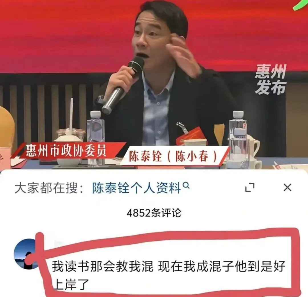 可不管是砸钱还是托人脉,向佐都没火起来,反倒不如在综艺里自扇两巴掌出圈快。前段时间他靠着抽象人设吃到流量红利,全家都忙着直播带货,结果被曝出向家欠外债、连他的赌债都还不上,路人缘直接暴跌。这次他上脱口秀自嘲卖惨,说白了就是想洗白自己,重新博好感,接着收割观众韭菜。陈小春最近以某市z协委员的身份参加了当地z协会议,当年的“山鸡哥”,如今正式往权力圈转型,不少网友看到都破防了,纷纷调侃读书时他演古惑仔教大家混社会,等我们真走进社会了,他反倒先上岸了。其实娱乐圈不止陈小春,很多大牌明星到了一定年纪,都会往水表、权力方向转型。