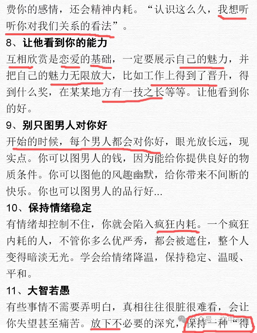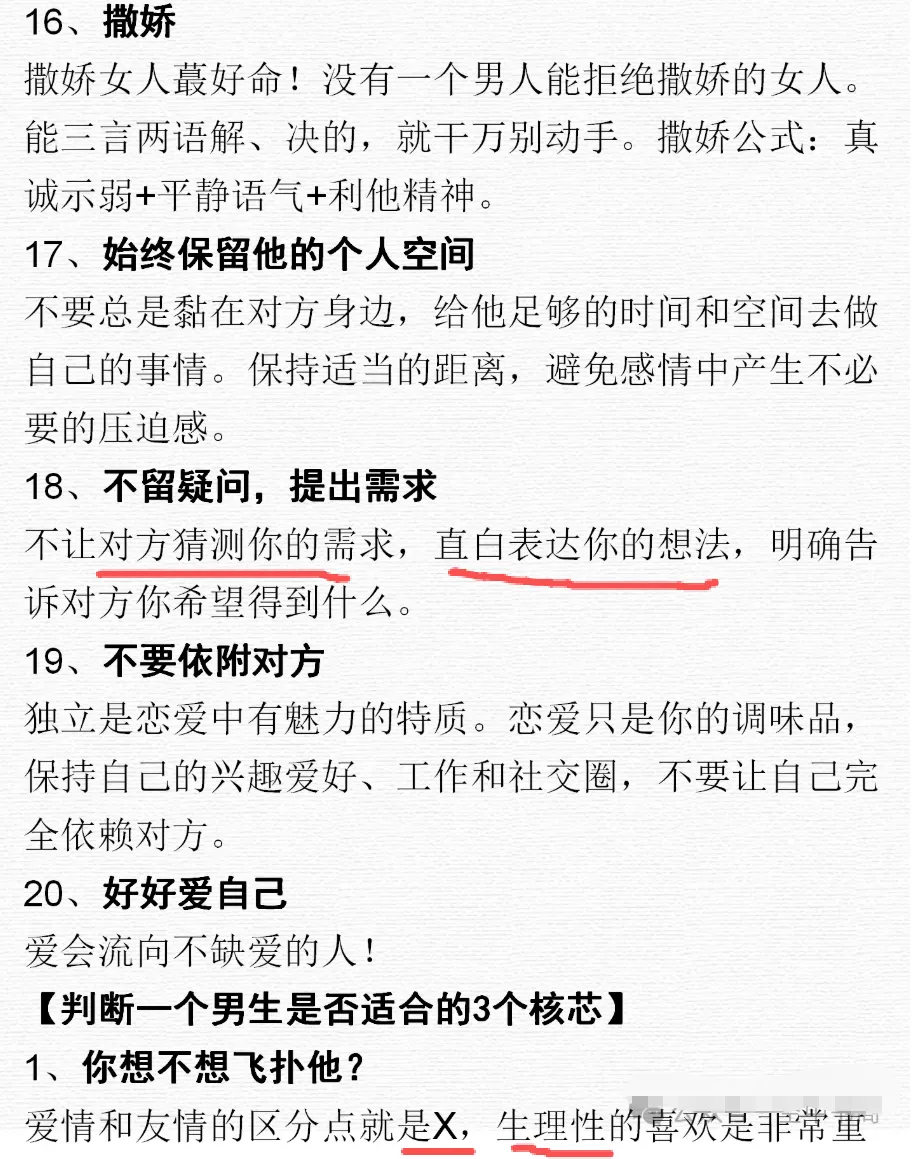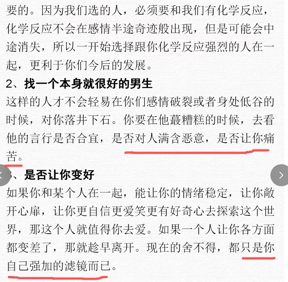 1️⃣好男人都是主动抢来的,不是等来的。你看不上的男人对你献殷勤,再多都没用。只有你看得上的男人对你主动才叫追你,看不上的男人追你叫骚扰。我的每一任男朋友都是自己主动撩来的,我只和我看得上的男人聊天接触,看不上的直接拉黑,免得浪费时间。