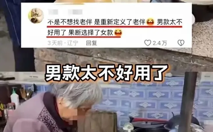 本是一段普通的老年相伴日常,却在网上掀起轩然大波,评论区直接炸开了锅 —— 有人直呼这个思路太绝,提议女人老了找女伴、男人老了找男伴,不用迁就异性的种种要求,反倒过得自在。