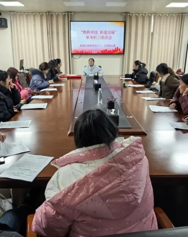 “现在村里不少年轻人在外务工,社交圈子窄,婚恋问题成了家长的心病。要是能把各村的单身青年信息整合起来,再对接城里的优质资源,肯定能帮他们解决大问题!” 在新建区《鹊桥牵线・新建良缘》专题座谈会上,鹊桥服务中心负责人陈水林主任的发言刚落,便引来全场热烈掌声。1 月下旬,新建区鹊桥服务中心陆续联合全区各乡镇村组织召开专题座谈会,共110余名村主任参与会议,围绕鹊桥计划落地、青年婚恋服务创新等议题展开深入研讨,现场气氛热烈,共识在交流中凝聚,方案在讨论中完善,为新建区构建覆盖城乡的文明婚恋服务体系奠定坚实基础。