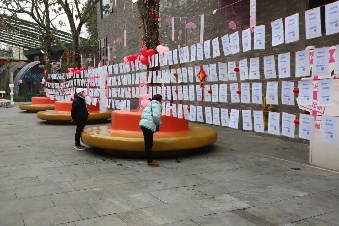 为帮助适龄青年交友联谊,在大足区政协的推动下,在区民政局、区总工会、团区委、区妇联等单位的协同努力下,香霏街婚恋主题街区应运而生。街区规划建设了“大足单身驿站”“爱情长廊”“相亲角·心动脱单墙”“民政局结婚证颁证处”等功能设施,其中的“相亲角·心动脱单墙”张贴了成千上万张嘉宾信息,整个街区是一个可逛、可玩、可相遇、可定情的“一站式浪漫空间”。