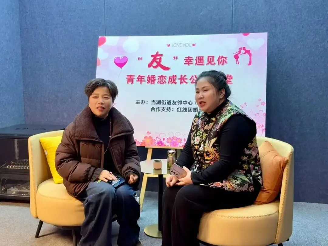 为帮助广大青年树立正确的交友观、爱情观、婚恋观,2月5日,当湖街道友邻中心(社工站)邀请红线团婚恋桑燕老师、心理咨询师陈莉老师来到直播间,借助平台直播形式,传播健康、积极、向上的青年婚恋观。同时,为广大单身男女的婚恋问题带来新的解题思路。