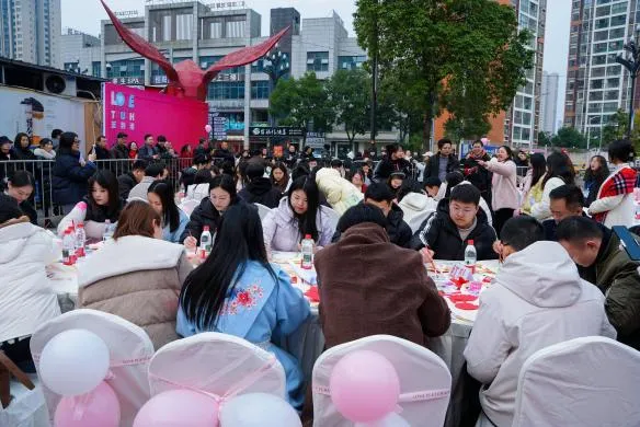 香霏街婚恋主题街区融合石刻文化、昌州文脉与婚恋服务功能,打造集交友联谊、婚俗体验、文创打卡于一体的城市甜蜜新地标。本次活动坚持公益导向,突出文化内涵与安全保障,精准回应青年婚恋需求,培育大足特色婚恋文化品牌。