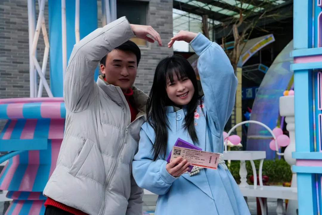 交友联谊环节精彩纷呈。单身青年身着古装,通过风采展示、互动抽奖、团队闯关、寻缘打卡等环节轻松交流。街区内设置时光邮局、同心手绘、爱情任务卡等沉浸式体验,搭配大红花轿等婚俗场景,让青年在趣味互动中拉近距离。活动现场评选人气嘉宾,增设心动告白环节,成功牵手嘉宾收获祝福礼品,氛围浪漫热烈。