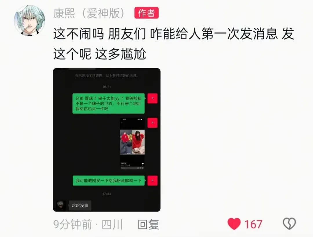 而对于那件“同款卫衣”,康熙也做出了辟谣回应。