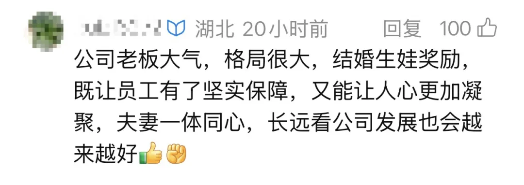 2024年年8月,东莞市谭氏精密模具有限公司宣布:自2025年1月1日开始,结婚、生育的公司职工可凭结婚证与出生证明,向总经理领取不低于800元的现金红包。