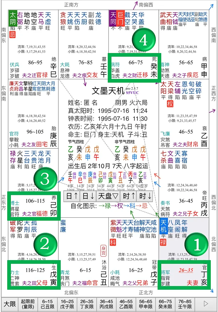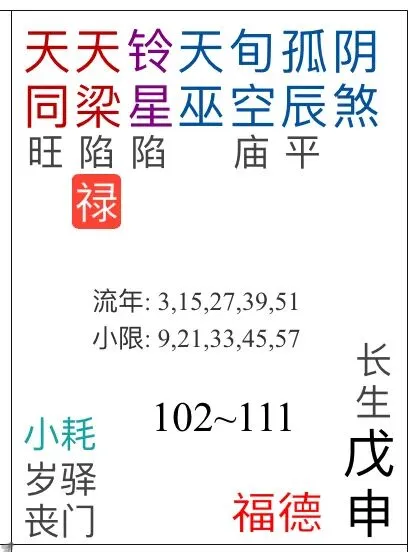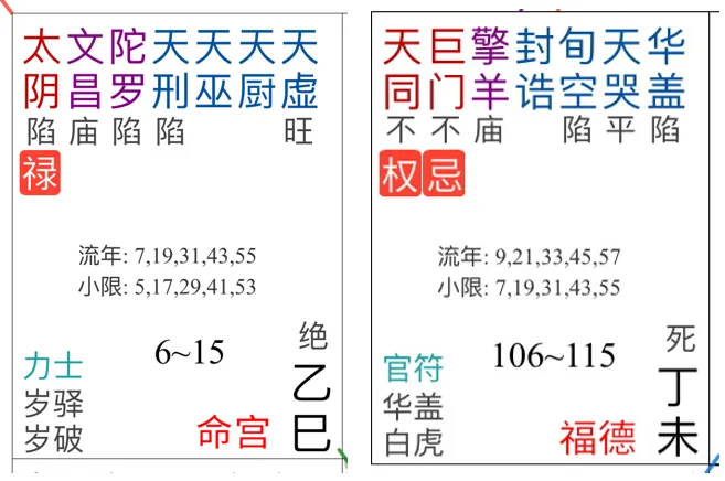 案例2:福德宫文昌生年忌(红色小字)+