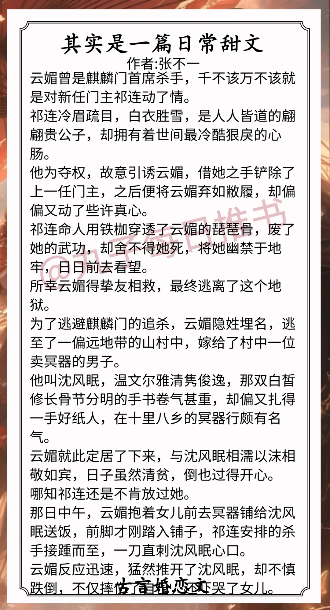 6.《其实是一篇日常甜文》作者:张不一(金盆洗手女杀手vs扮猪吃老虎纨绔小王爷,先婚后爱,双披马甲,日常流)