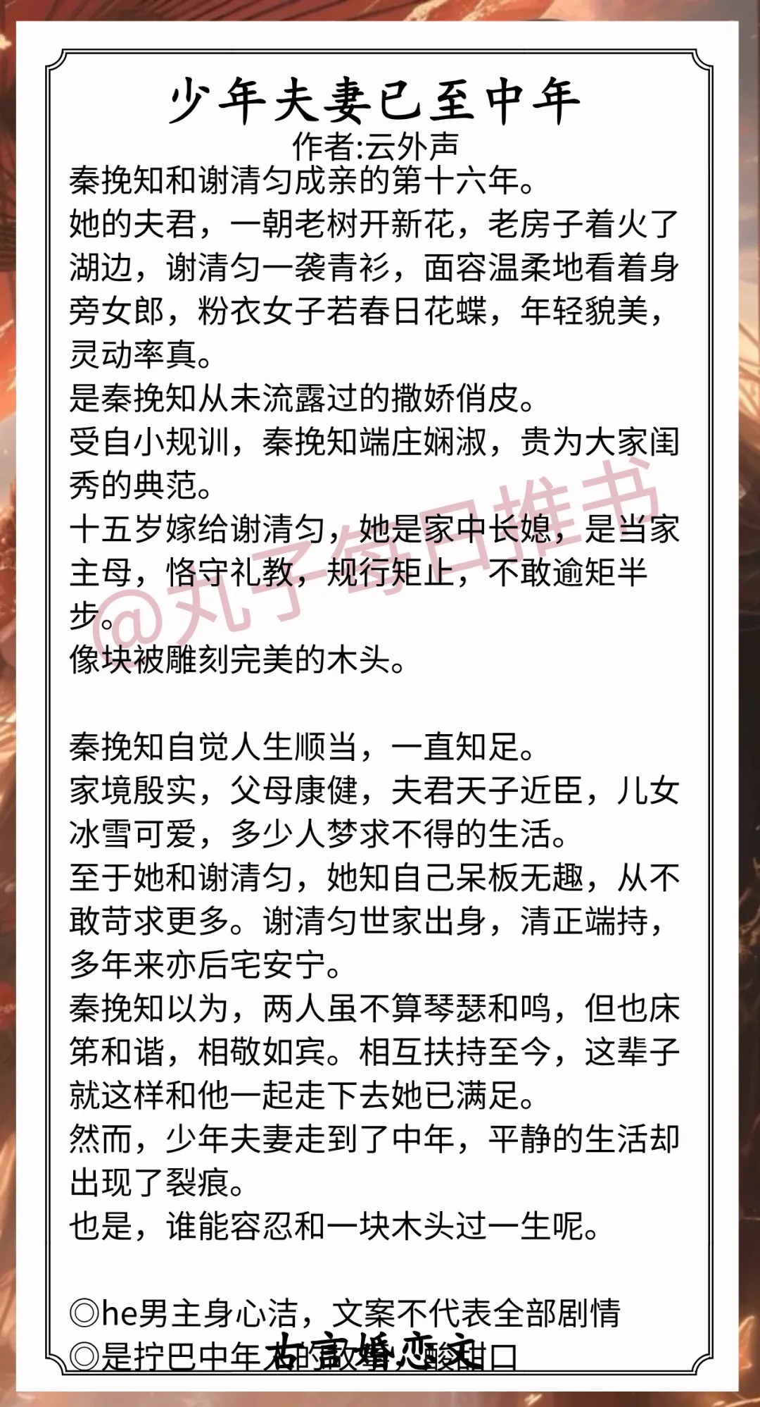 7.《少年夫妻已至中年》作者:云外声(端庄主母vs清冷丞相,婚恋,酸甜拉扯,30+拧巴中年人的爱情故事)