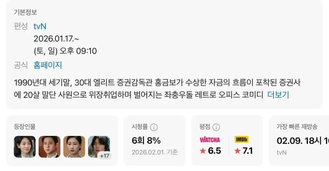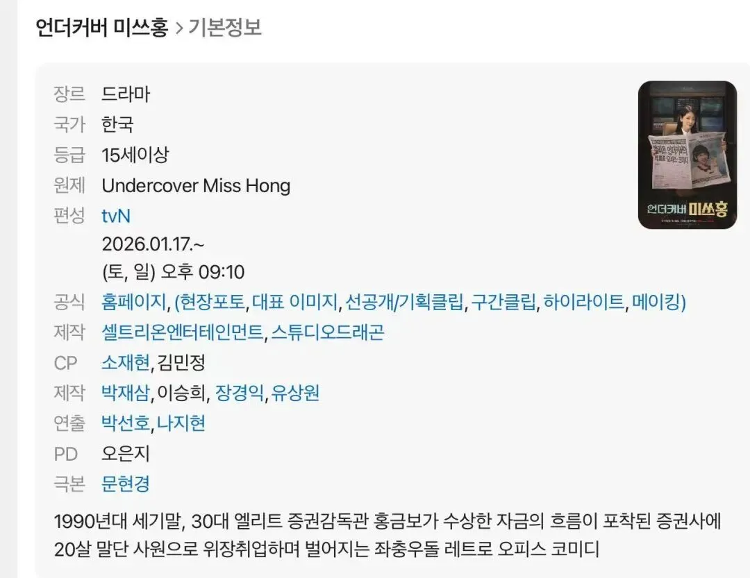 剧集把1997年末的职场氛围还原得太到位了! 老式电话、泛黄的灯光、女职员被统称为“Miss”的设定,还有朴信惠和高庚杓那些复古穿搭,瞬间把人拉回那个年代。怀旧感十足,观感非常舒适!