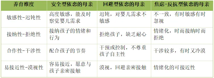 研究发现,儿童的依恋特点直接对应的养育特点:
