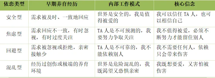 不同依恋模式形成的心理机制总结