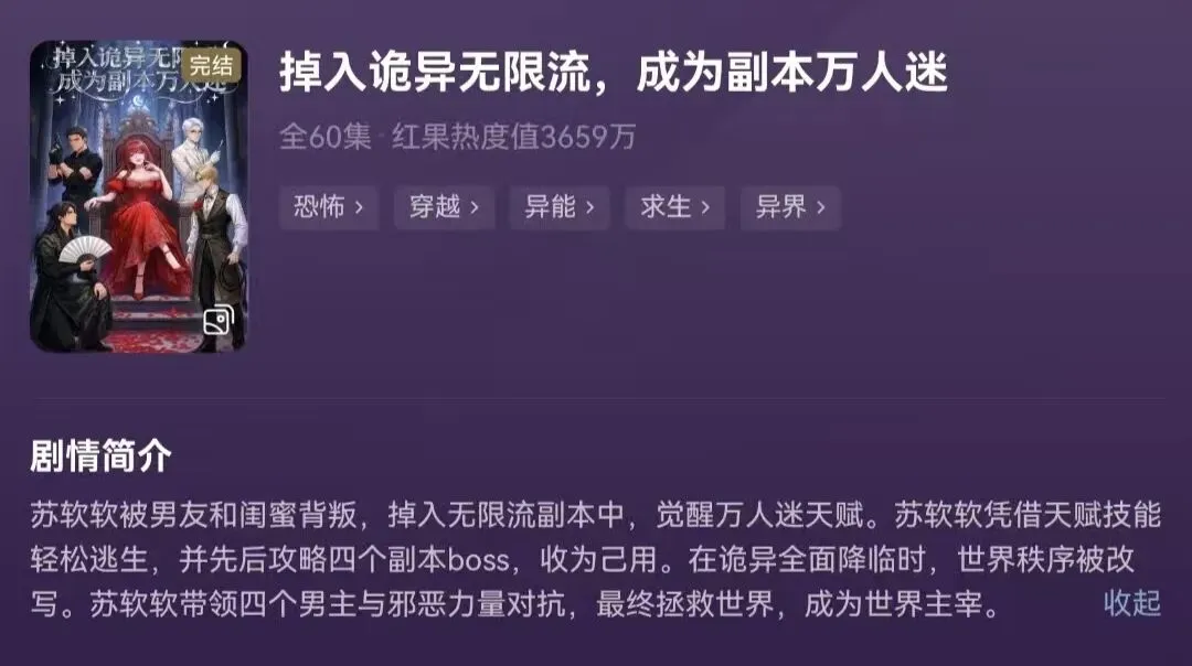 AI动漫风的无限流、末日本、诡异本、规则本基本不踩雷。女频偶尔有剧情有趣的,但是画风都挺离谱的。不过这期女频有点出息了。
